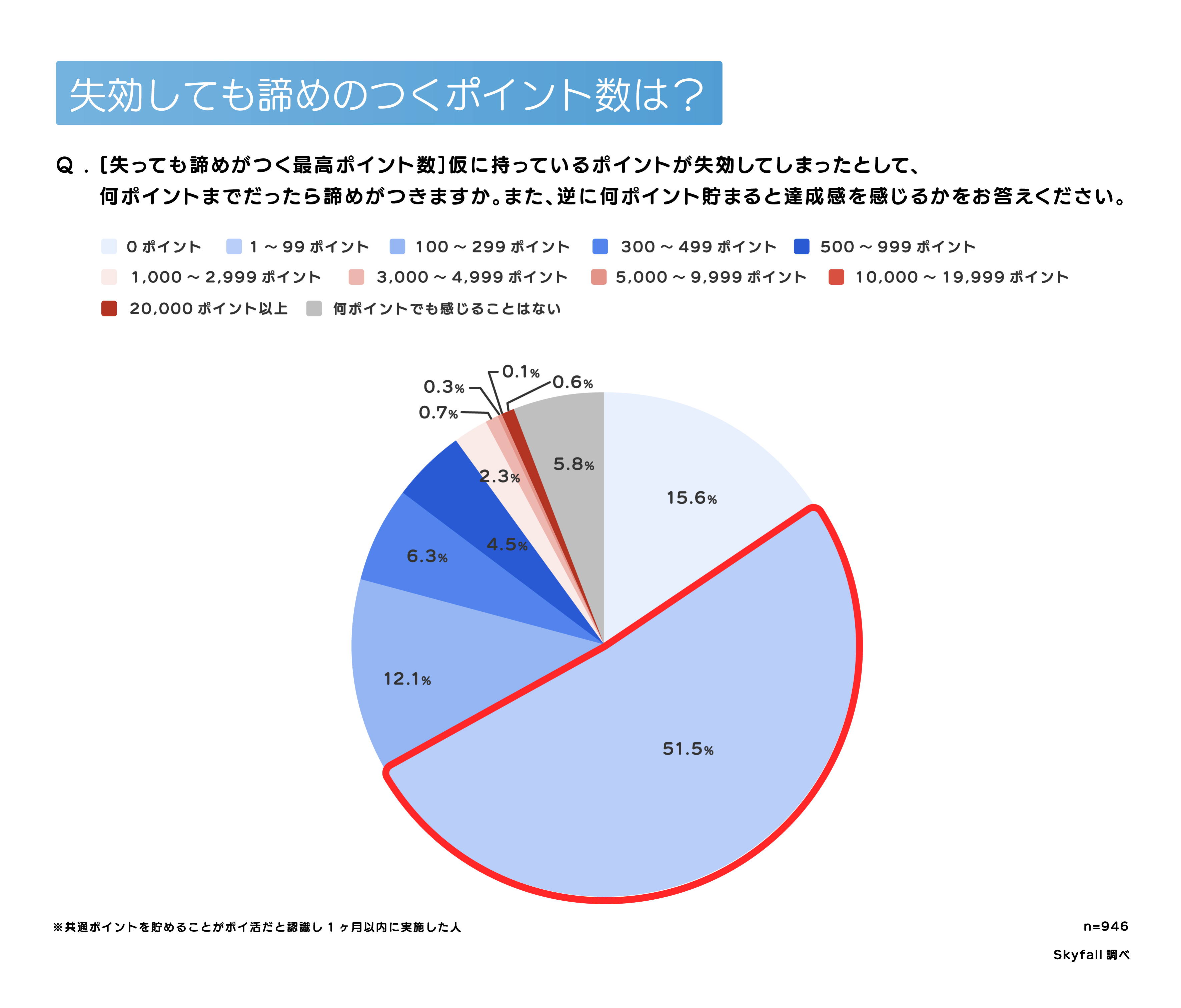 最も多かったのは「1~99ポイント」が51.5%となり、半数以上が“100ポイント未満なら失効しても諦められる”と回答しています。
